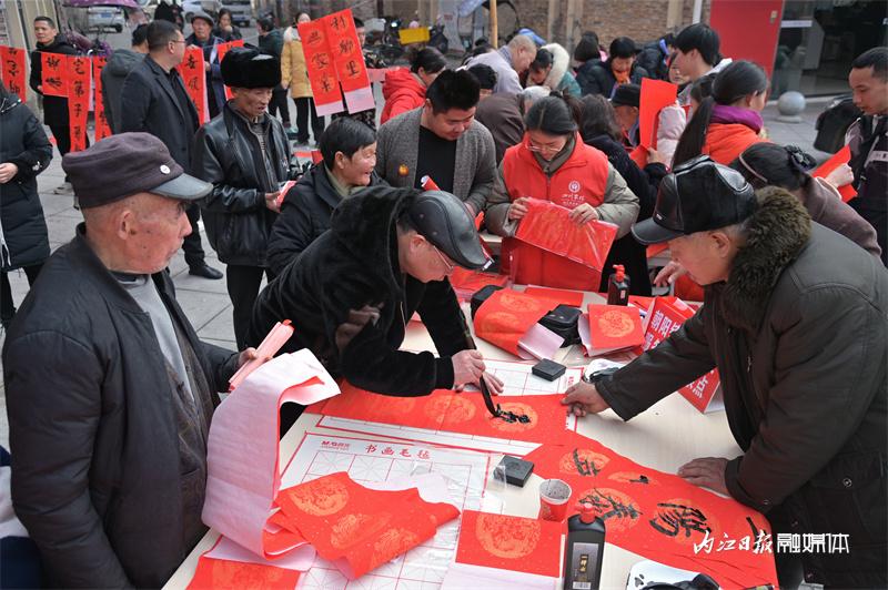 欣赏文艺节目的同时,现场还举行了返乡农民工招聘会、义诊志愿服务以及书法家送春联活动,节目中穿插了两轮有奖问答环节,大家积极参与,现场气氛热烈。