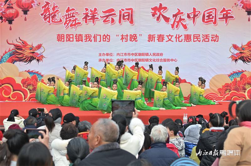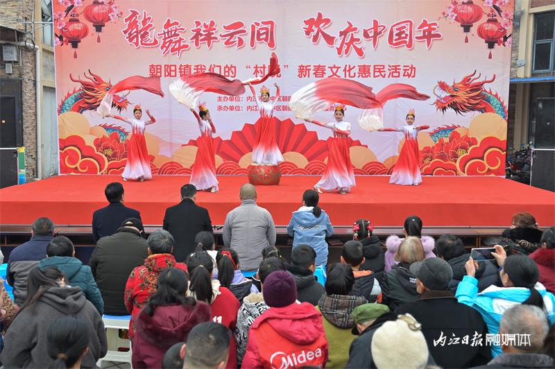 龙舞祥云间,欢庆中国年。2月2日,农历小年,“我们的村晚”——朝阳镇新春文化惠民活动在内江市市中区朝阳镇“世纪朝阳”活动广场举行,丰富多彩的惠民活动吸引了众多居民围观。