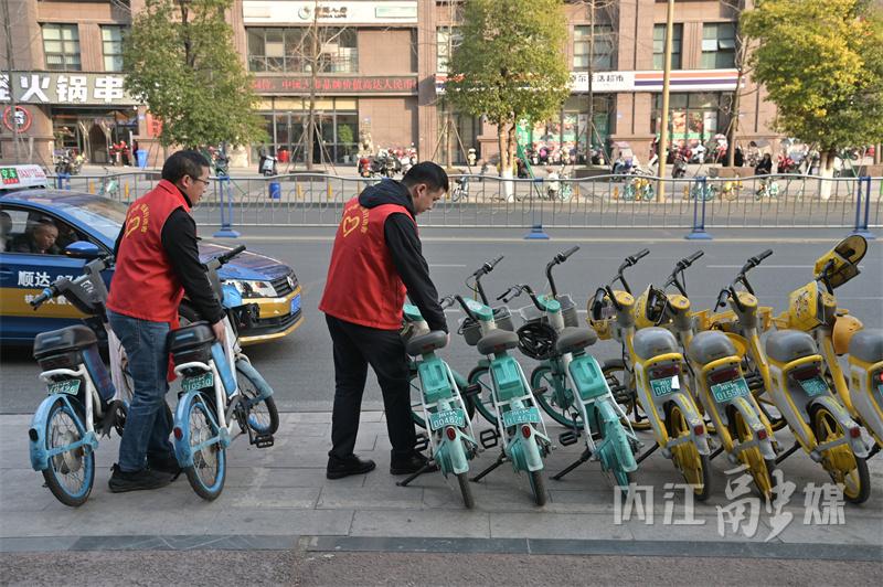 同时,来自内江市生态环境局、内江市直机关工委的志愿者在东兴区西林大道、晨望路附近的大街小巷进行巡逻,开展规范共享单车停放、清理路面垃圾、劝阻行人乱穿马路等文明劝导服务。