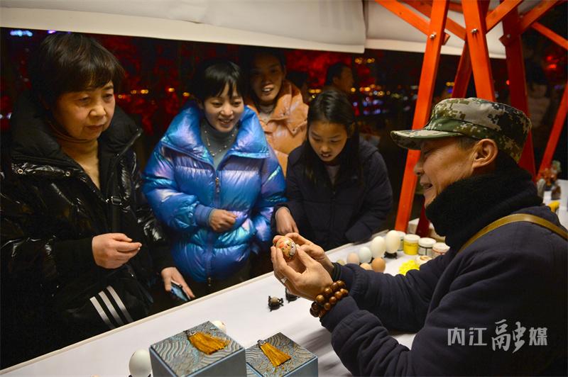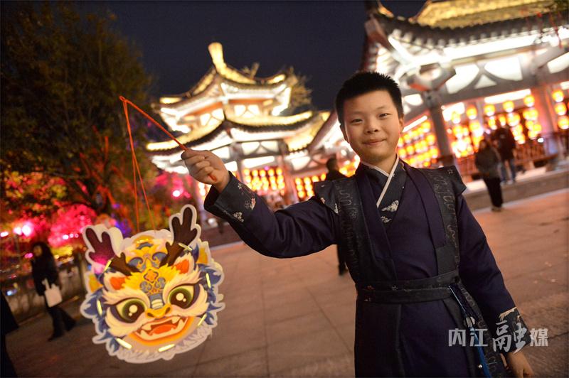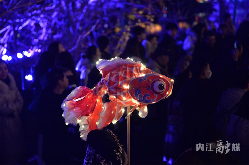 “很高兴参加今天的活动!内江有着深厚的文化底蕴,今天的游园活动让更多年轻人感受到优秀的传统文化。”当晚,东兴区胜利小学老师杨继季做了一个鱼灯,带着学生和儿子来闹元宵。