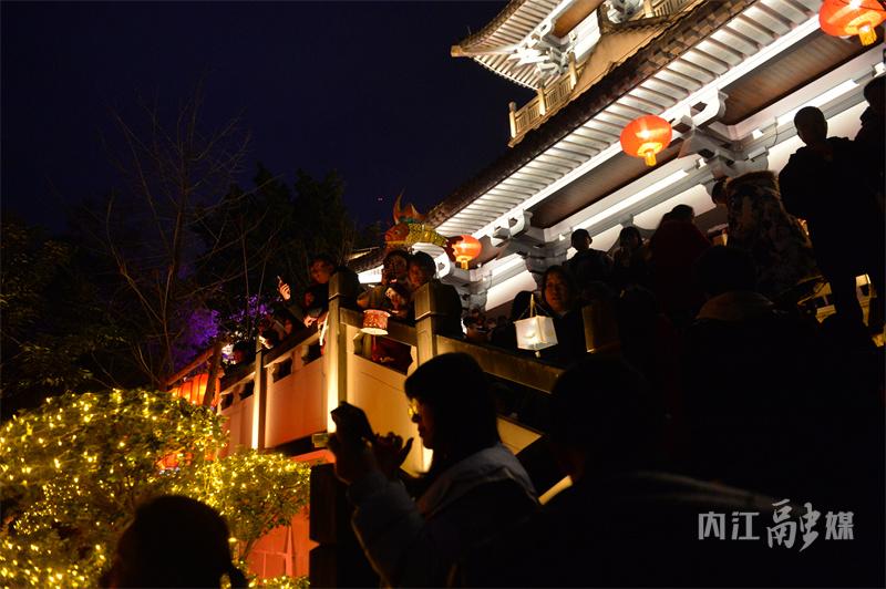 2月24日(元宵节),位于内江市东兴区大千园的太白楼张灯结彩,灯火通明。“元宵花灯游园会”在太白楼隆重上演,丰富多彩的传统文化活动吸引了众多市民前来游玩。