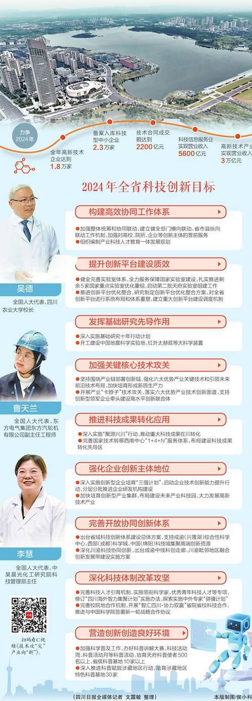2023年7月,习近平总书记来川视察时作出“在推进科技创新和科技成果转化上同时发力”重要指示。过去一年,四川一体推进科技创新和科技成果转化取得积极进展,区域创新能力提升2位,居全国第十位;新的一年,又提出以科技创新引领现代化产业体系建设,加快形成新质生产力,“上新”的步伐愈加坚实。