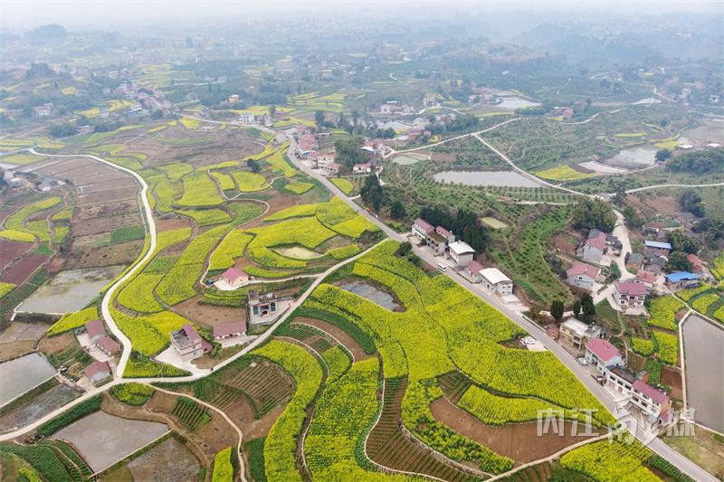 2月27日,内江市资中县银山镇黄莲树村,油菜花进入盛放期。