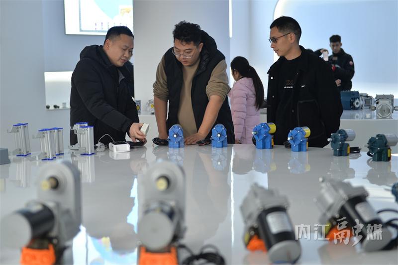 当天,记者先后走进两县的产业园区和农业基地了解产业情况。在威远黑山羊全产农牧循环产业园,一排排具有民族特色的建筑让人眼前一亮,一头头黑山羊传递出生态科学的养殖理念;在四川久润泰科技有限公司,一瓶瓶饮料源源不断从自动化生产线上送出,营养健康的“甜味”受到市场的广泛认可;在四川晨禾电机制造有限公司,拥有国内外30多项专利的农机产品驰名全国并远销欧美、日韩等地;在资中乔兴体育用品有限公司生产车间,一双双“内江造”乔丹运动鞋彰显出高质量发展的强劲动力;在资中双龙镇三柏村晚熟血橙种植基地,漫山遍野的血橙挂满果树;在四川紫晨农业科技有限公司血橙智能分选线上,源源不断的血橙滚入筐中,“内江甜”受到市场的青睐。