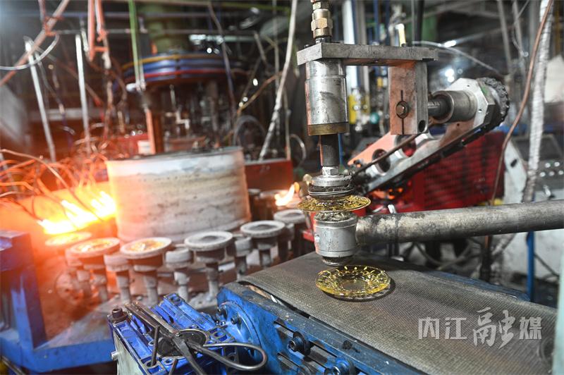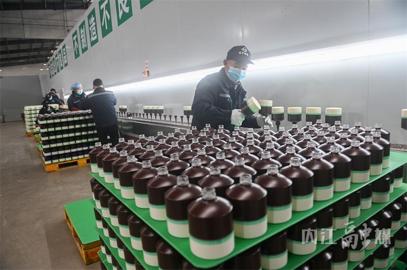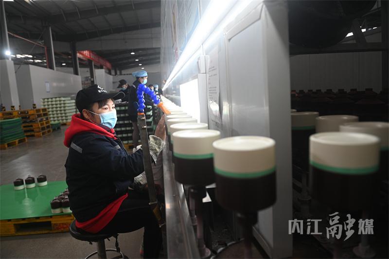 3月5日,在位于隆昌市石燕桥镇的玻陶特色产业园,四川观宇玻璃实业有限公司生产车间内一派繁忙景象。生产线上,经过原料配制、熔制、成型、退火、检验等工序,一批色泽均匀、造型美观的酒瓶源源不断地生产出来。