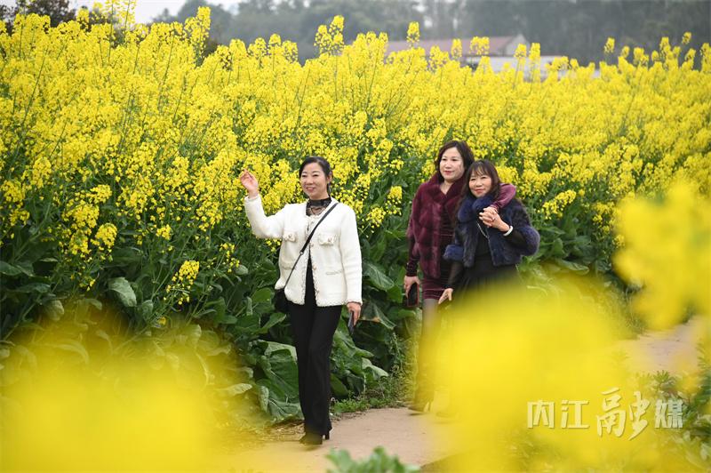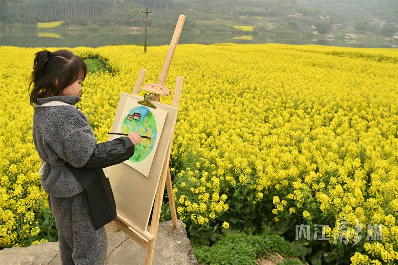 连日来,位于内江市东兴区椑木镇建设村的连片油菜花田迎来盛花期。拍照打卡、现场写生,游客络绎不绝前来赏花。