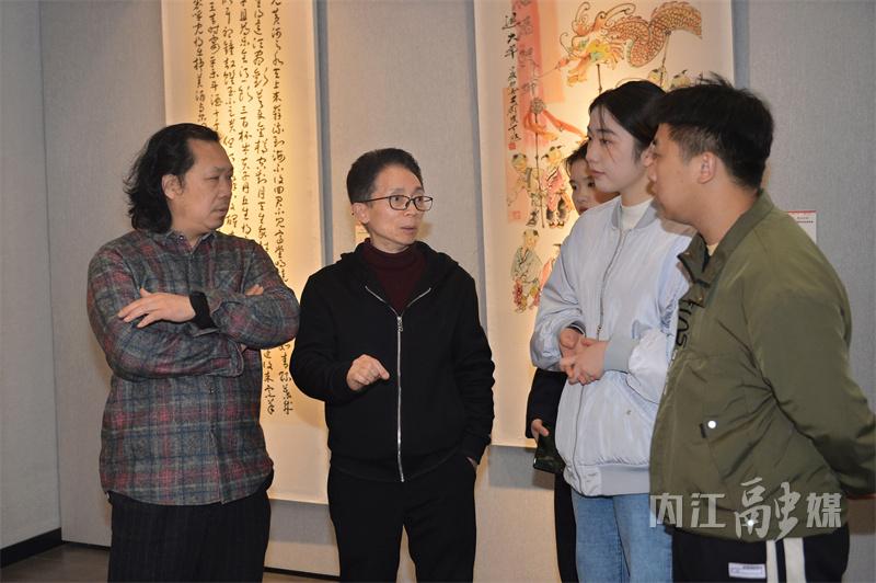 “刚刚看了展览很有收获,深受内江书画家作品的感染,也感受到‘大千画派’的魅力,展览为我们提供了一个非常好的学习交流平台。”内江师范学院美术学院大四学生黄永强说。