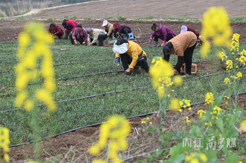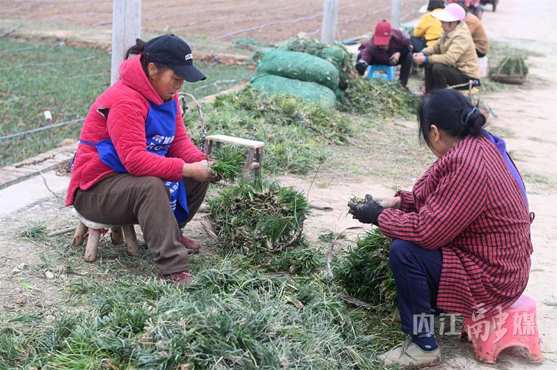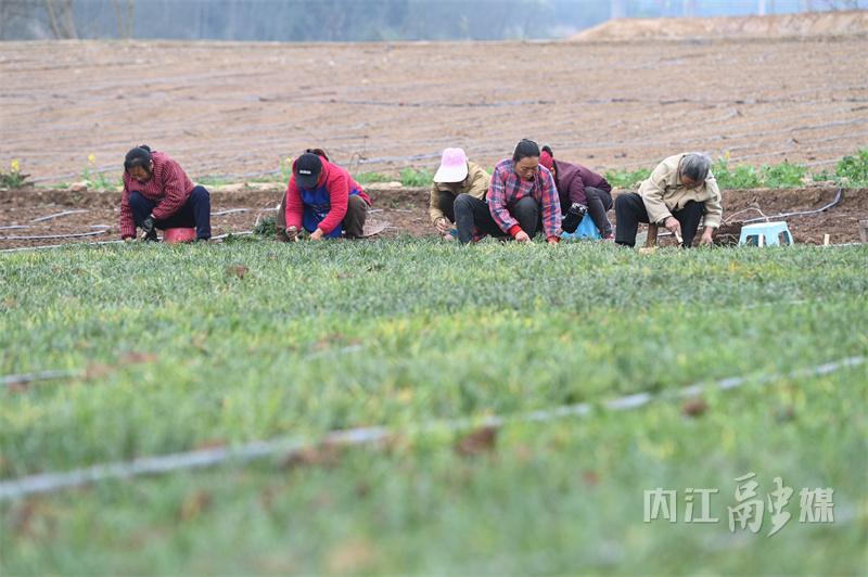 春回大地,农事渐忙,眼下正是春耕备耕关键时期。3月13日,位于内江市市中区史家镇四美桥村中药材种植基地内,村民们正抢抓农时栽种麦冬,田间地头一派繁忙景象。