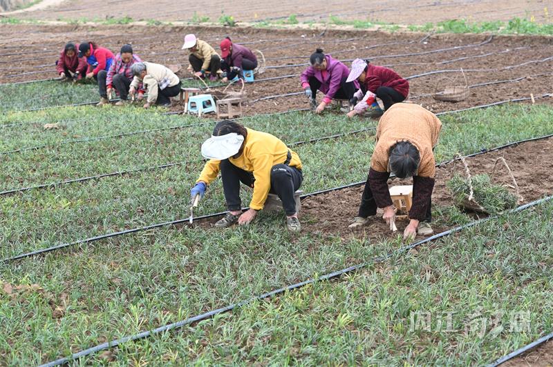 “每天组织了十多名村民来栽苗子,今天是第五天了,争取四月份之前栽完。”种植户孙鹏去年11月在四美桥村流转土地50余亩,考察市场之后决定种植麦冬,盘活撂荒地的同时,也带动当地村民就近务工增收。