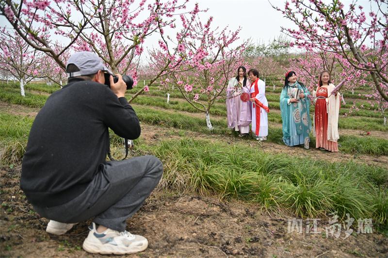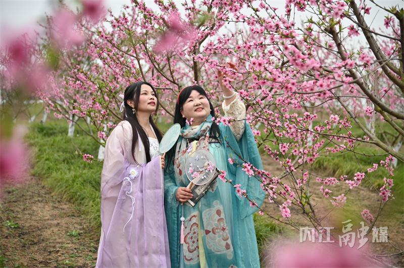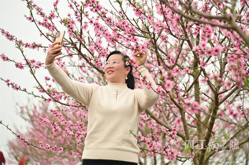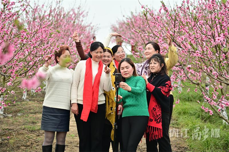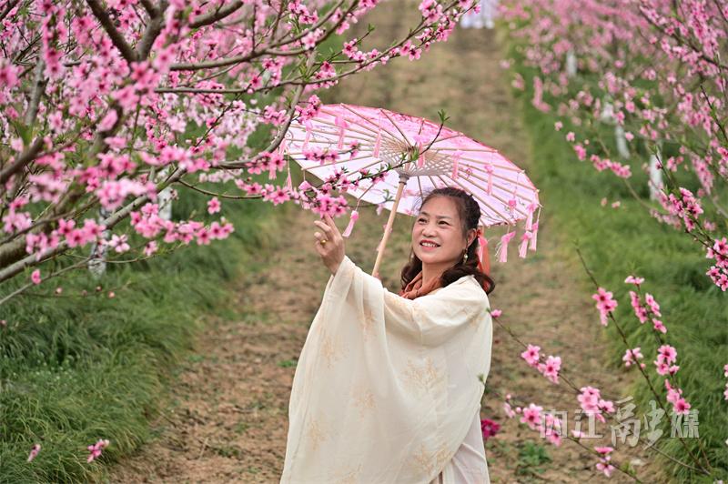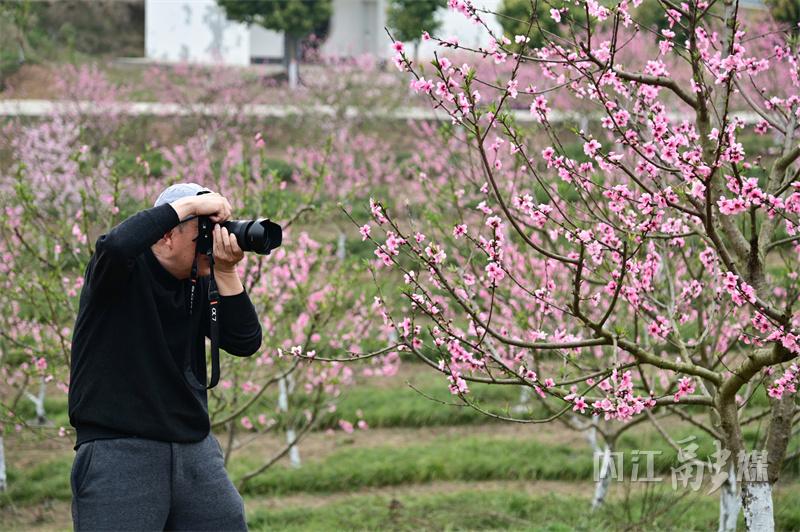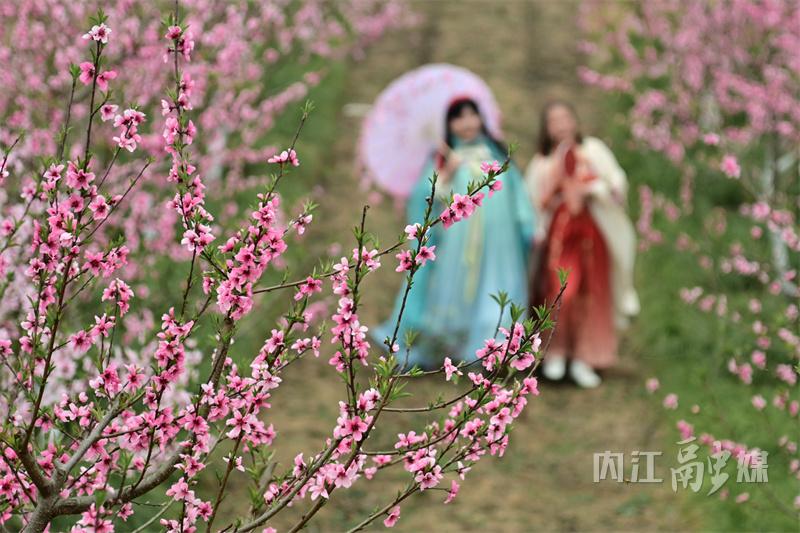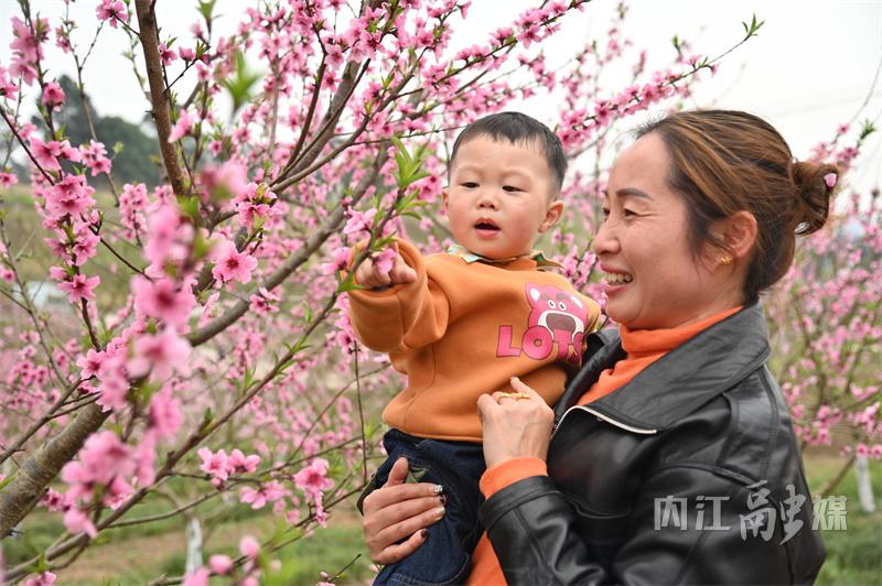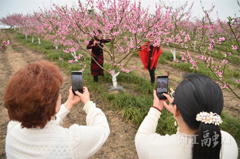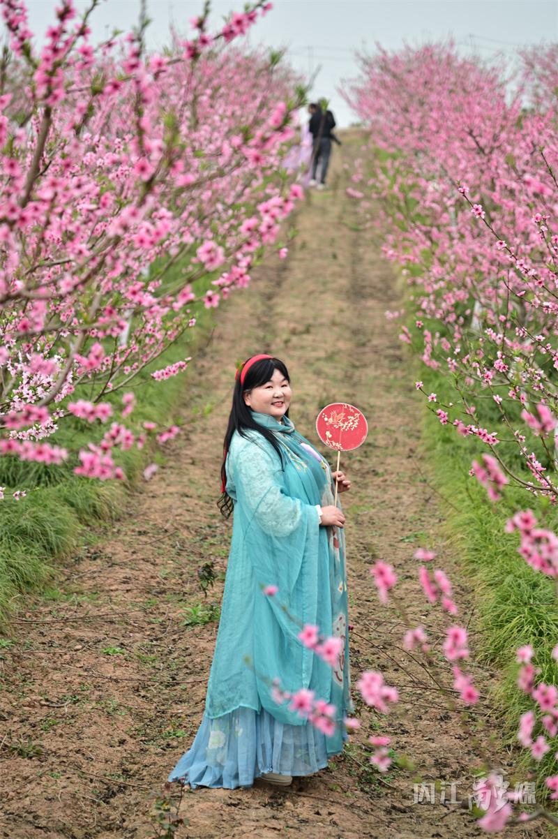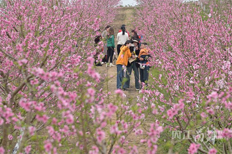 三月桃花朵朵开,内江市资中县鱼溪镇五指山农旅康养生态园的大片桃林正值盛花期,吸引了不少游客打卡。