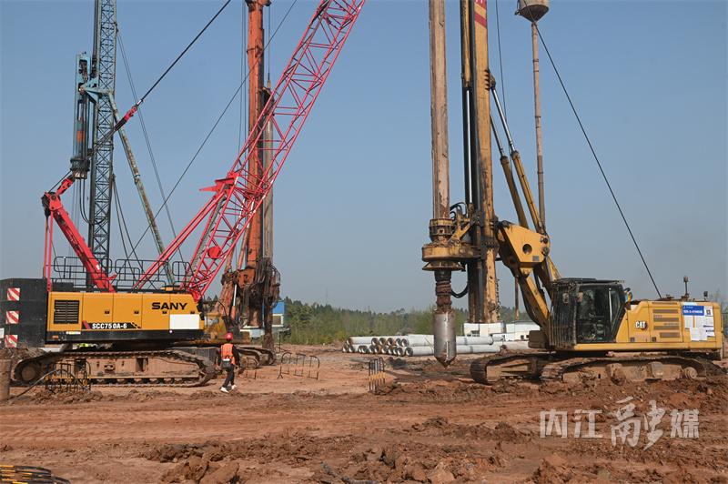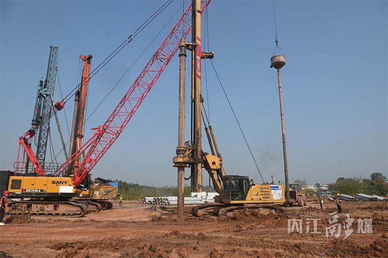 人勤春来早,项目建设“加速跑”。 3月14日,位于内江市东兴区田家镇的内江东兴食品加工集中区(一期)项目施工现场一派繁忙景象,挖机、打桩机等大型施工设备马力全开,全速运转,工人们正在各自工作岗位上忙碌,井然有序地施工作业。
