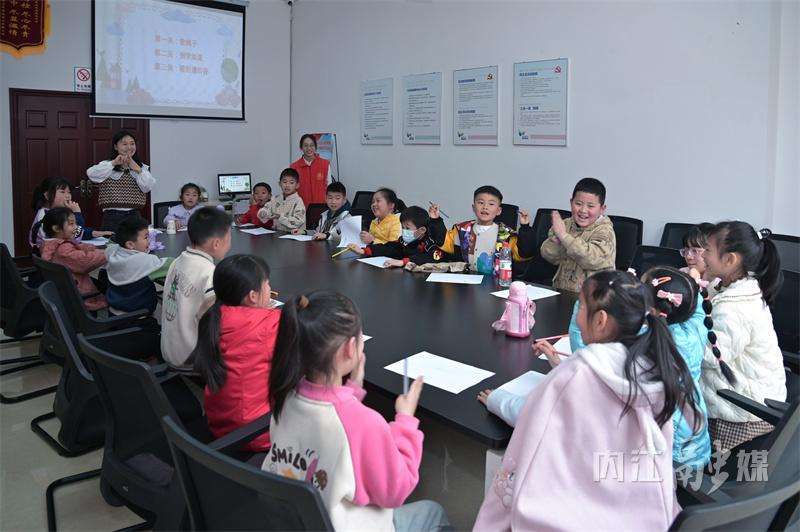 “数鸭子”“吃豆豆”“开宝箱”“火眼金睛”……与家长课堂相比,学生课堂显得更加欢乐。萌娃们在老师和志愿者的带领下,进行了益智闯关游戏和才艺互动表演,现场一片欢乐气氛,孩子们在寓教于乐的氛围中感受快乐。