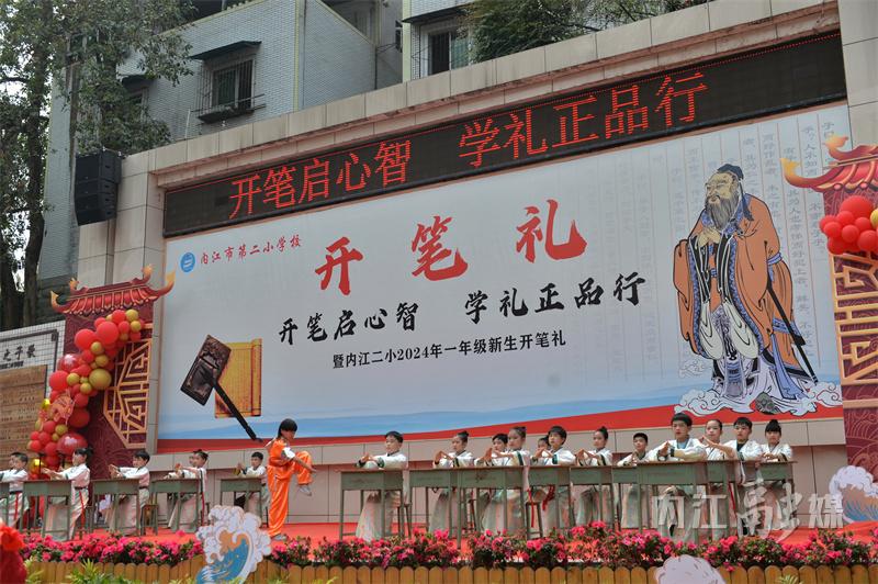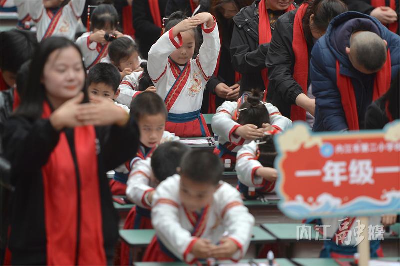 “童蒙之学,始于衣冠。先正衣冠,后明事理……” 3月15日,“开笔启心智 明礼润童心——内江市第二小学校一年级新生开笔礼仪”举行,一年级新生、学生家长和老师参加活动。