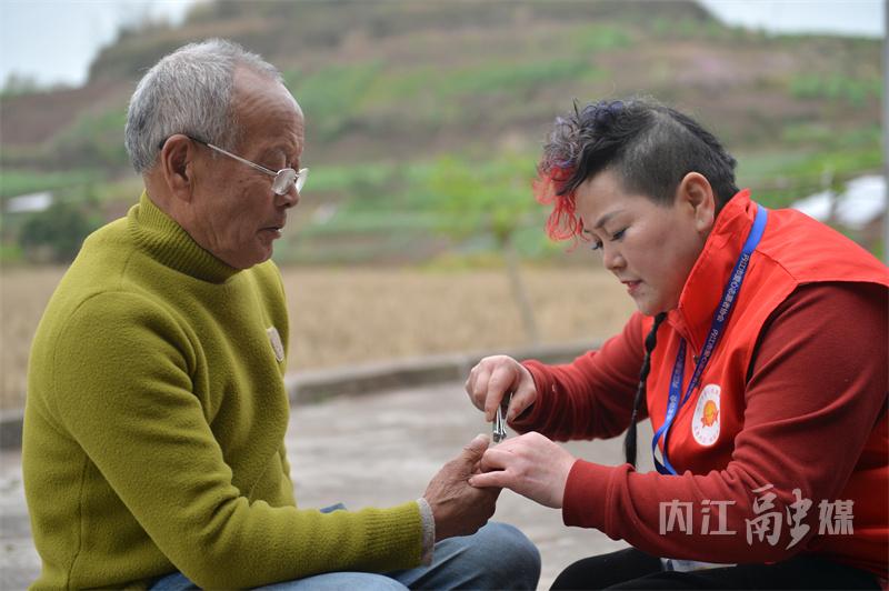 志愿者给老人剪指甲