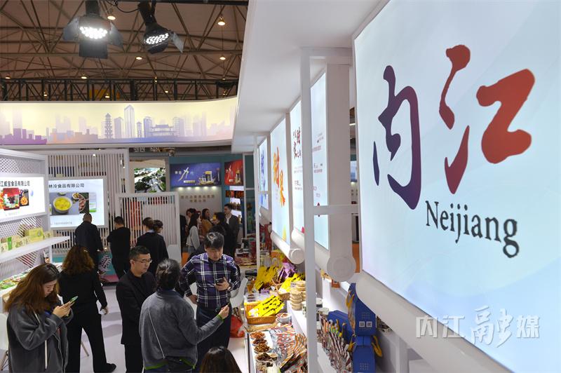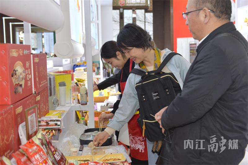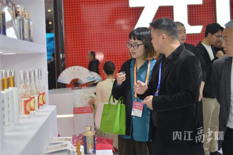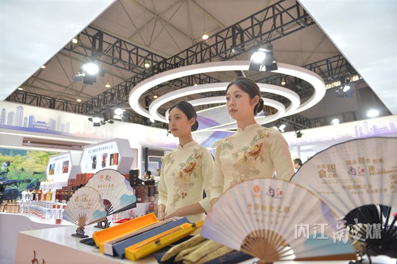 ▲3月21日,第110届全国糖酒商品交易会在成都举行。图为内江馆现场。