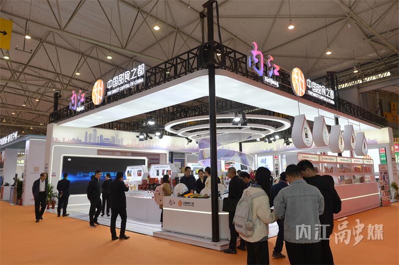 第110届全国糖酒商品交易会内江馆设在成都世纪城会展中心4号馆,分“甜品”“甜果”“甜饮”和综合展区,参展企业共22户。馆内人头攒动,十分热闹。展位前,来自天南地北的客商驻足了解产品,品尝美食、美酒。