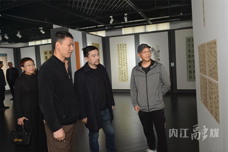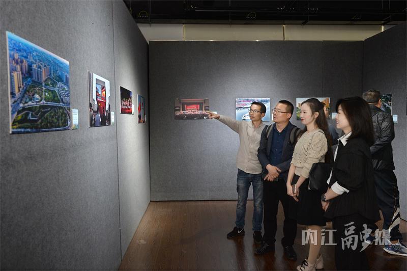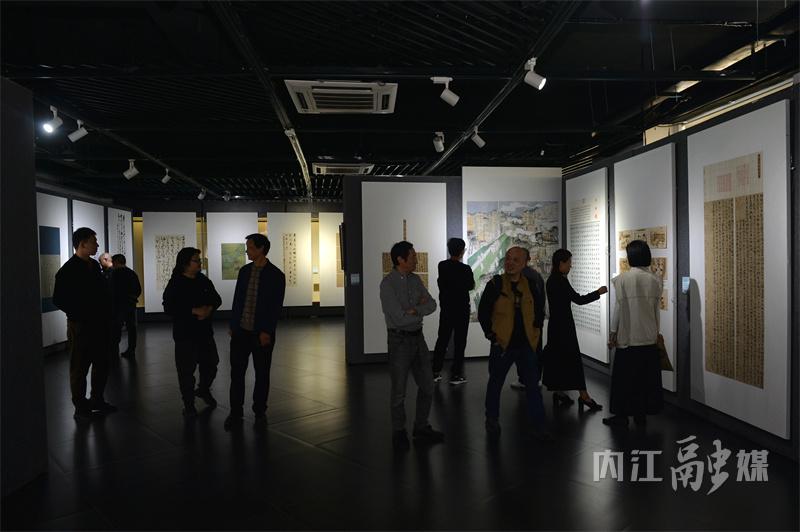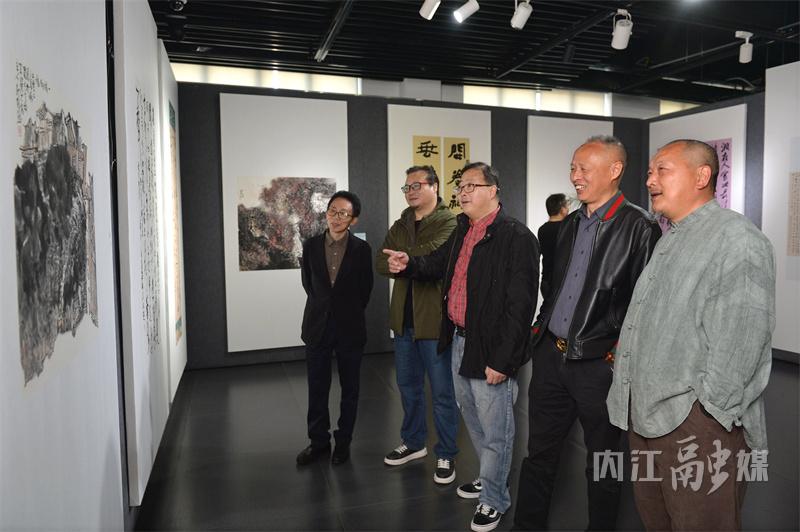 3月25日,“内江农商银行杯”内江市创建全国文明城市美术书法摄影作品展在张大千美术馆开展,内江文艺工作者、书画摄影爱好者代表和市民观看展览。