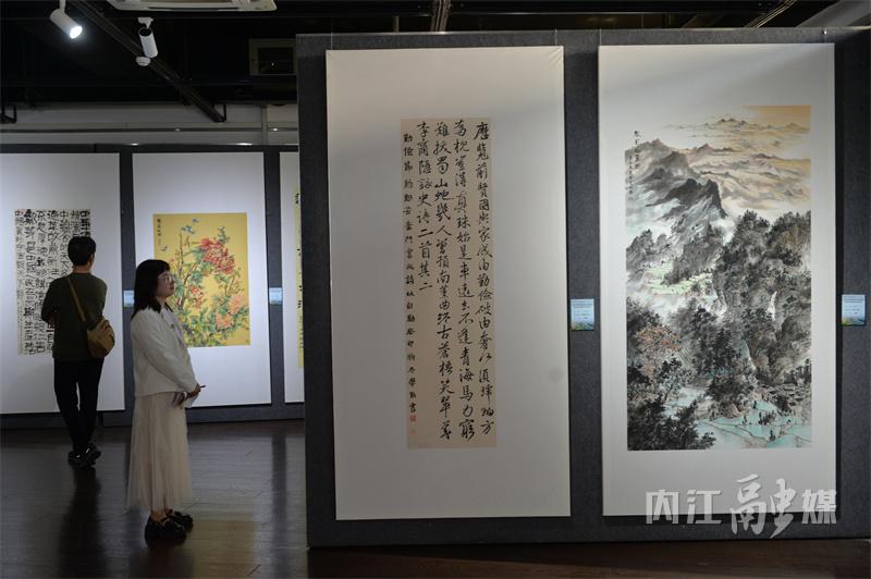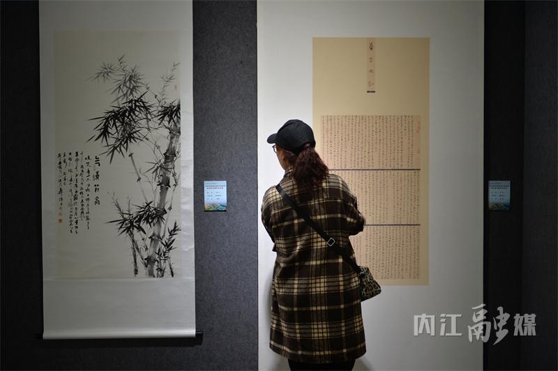 此次展览共展出作品148件,其中书法作品46件、美术作品40件、海报作品12件、摄影作品50件,这些作品主题鲜明、内容丰富、形式多样,以书画摄影的形式,生动地展现了内江积极组织文明实践活动和“甜美内江城、最美内江人”的形象。