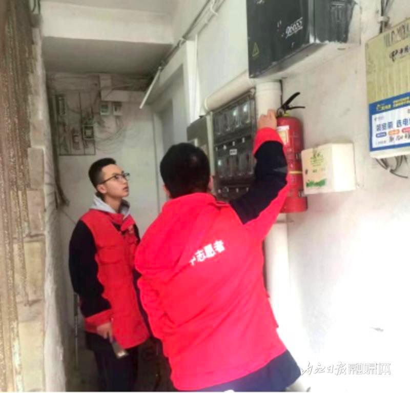 活动中,身着“红马甲”的志愿者,在社区工作人员安排下,分为10个小组,有的打扫院坝卫生,有的清理巷道死角,有的在楼道排查消防设施安全隐患。