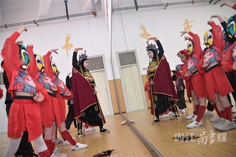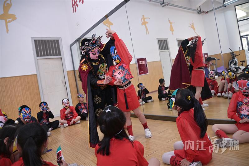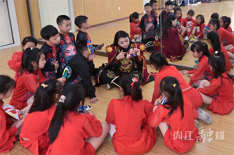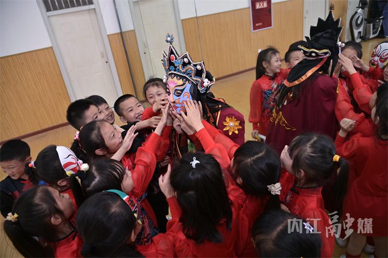 当日上午,文化志愿者走进学校,为同学们讲解戏剧常识,并现场教学川剧变脸技巧。学生们带上脸谱,身着统一服饰,体验川剧变脸绝活,零距离感受传统戏剧的无穷魅力。