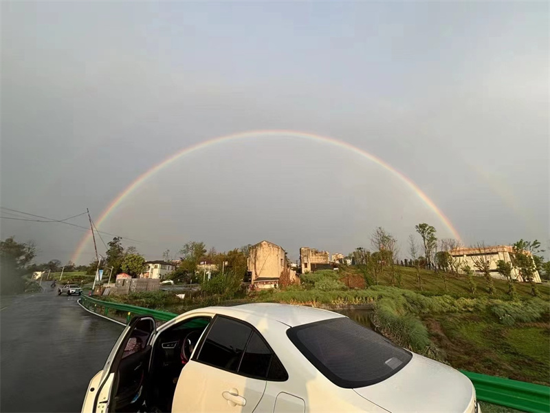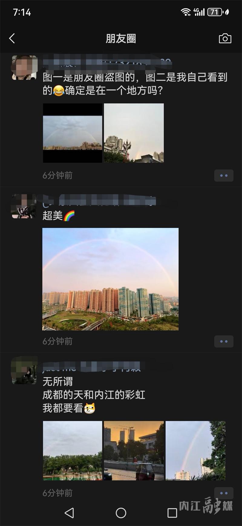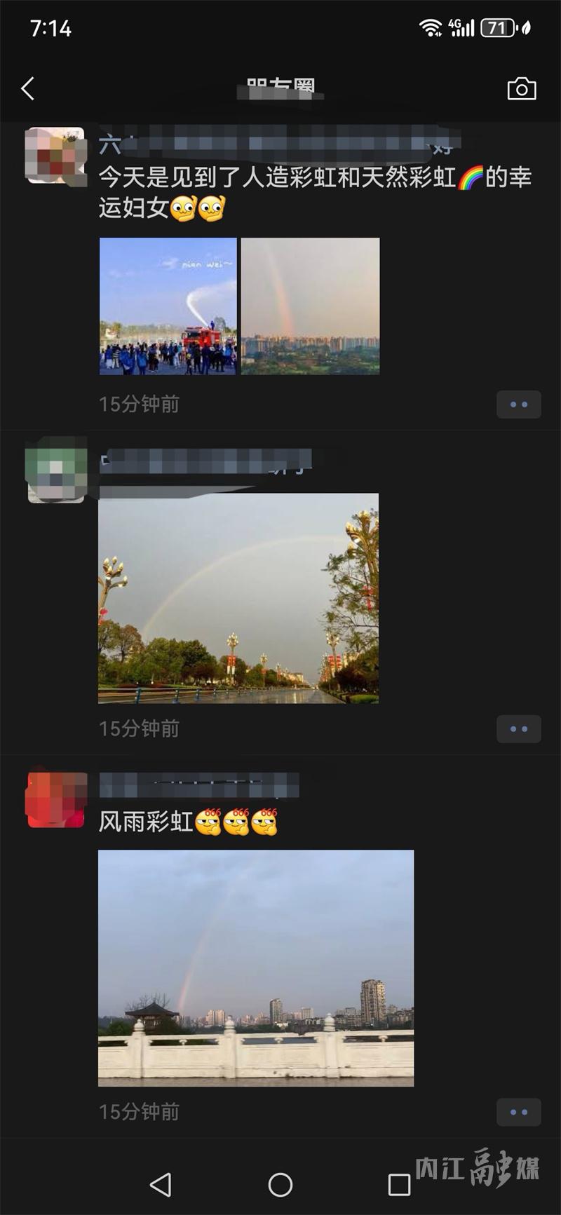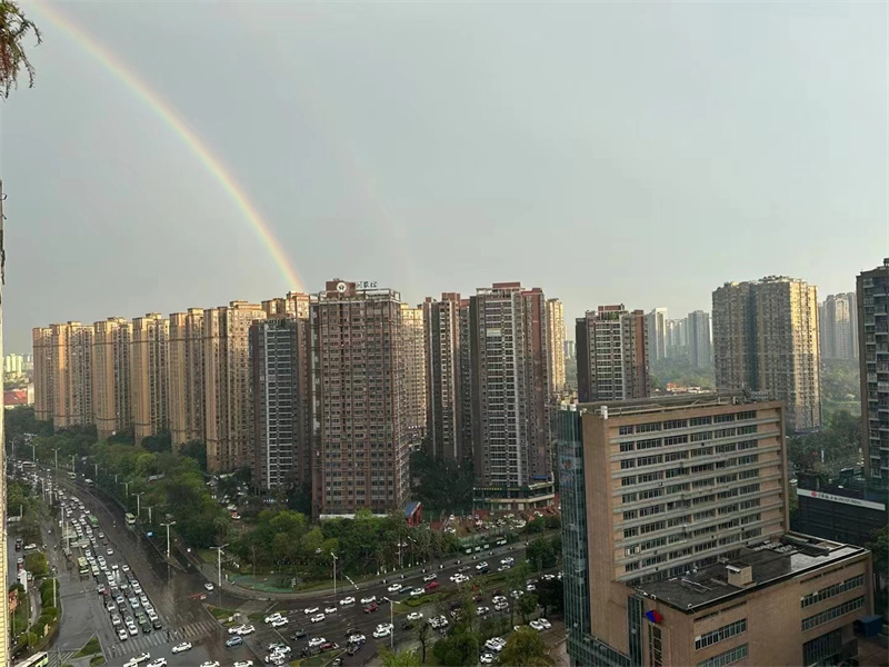 3月27日傍晚,一场阵雨席卷甜城大地。晚7时许,降雨的间隙,短暂的夕阳余晖乍现,一道彩虹出现在天际,红橙黄绿青蓝紫,七色彩虹瞬间刷爆内江人的朋友圈,一起来看看吧——