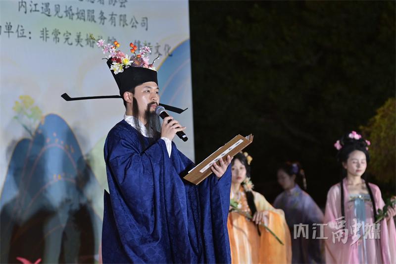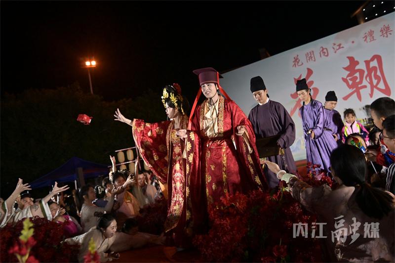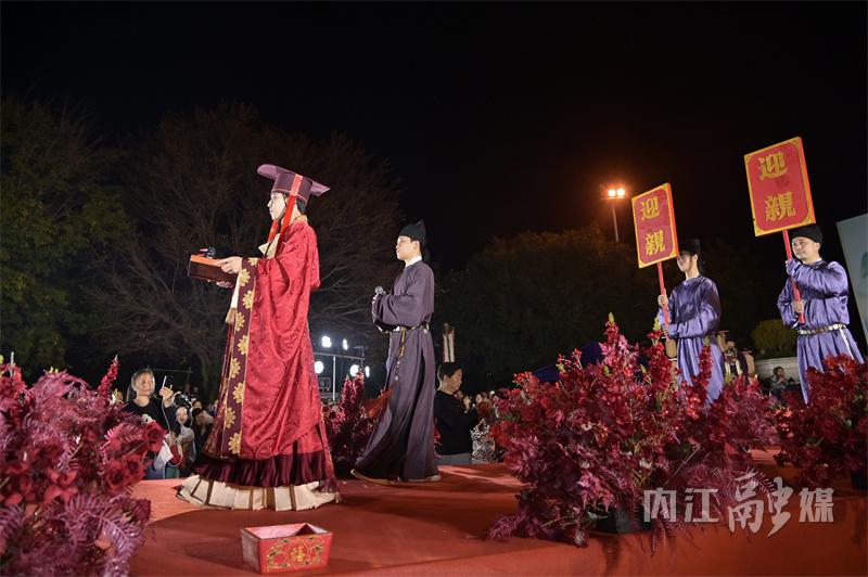 川剧绝活变脸吐火、古筝表演、“媒婆说媒”、祈福、唐制汉婚秀等极具民族特色的展演相继亮相,传统非遗与汉服礼乐的碰撞让在场观众大饱眼福、大呼过瘾。