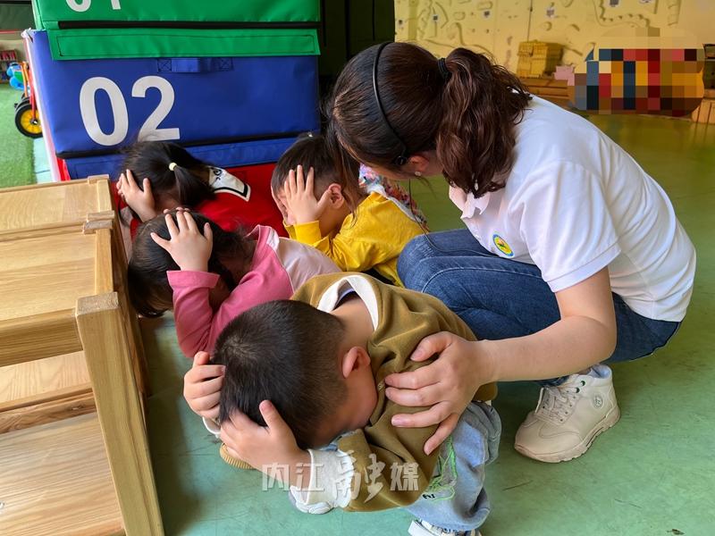 教师组织幼儿到安全区域躲避