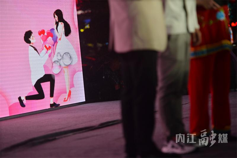当晚,在有“张媒婆”之称的张顺碧的热情鼓动下,多名单身男女登上舞台自我介绍、展示才艺。“我是一名英语教师,今天在姨妈的陪同下,专程从成都赶来参加活动。”“我今年26岁,希望能找到一位有共同志向的人,一起在内江创业。”……现场细雨绵绵,气氛温馨浪漫。