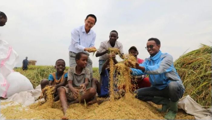 “丝绸包裹的种子,来自中国,饱满飘香的稻谷,长在非洲。从一个项目,到一个产业,黄皮肤汉子的执著,让黑皮肤的兄弟,理解了人类命运共同体的深意。稻浪千重,路远情长。”