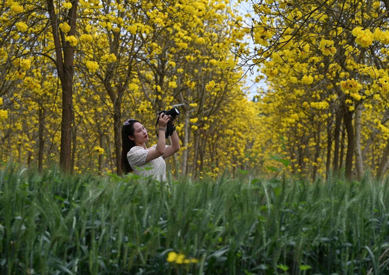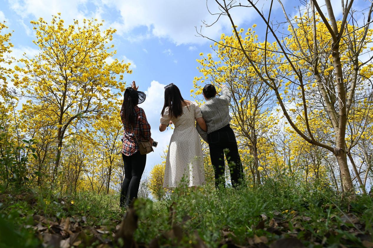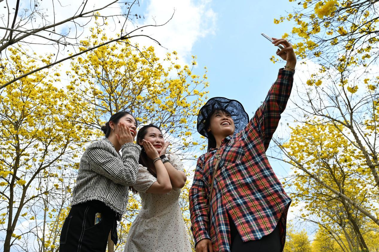 连日来,随着气温回暖,内江市东兴区石子镇太和村大片大片的黄花风铃木在春日阳光的沐浴下竞相怒放,迎来一年中最美的季节,吸引了当地群众和川渝周边游客前来赏花度假,打卡游玩。