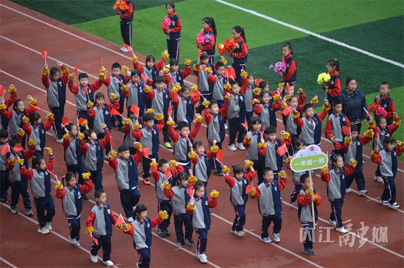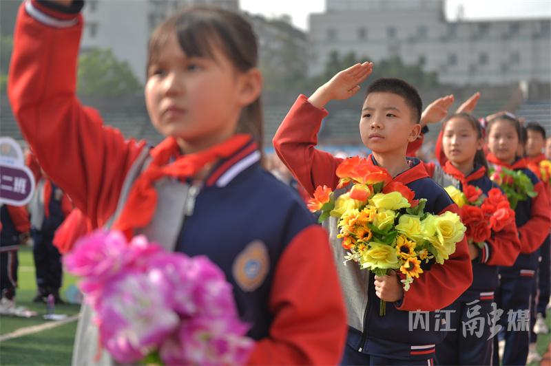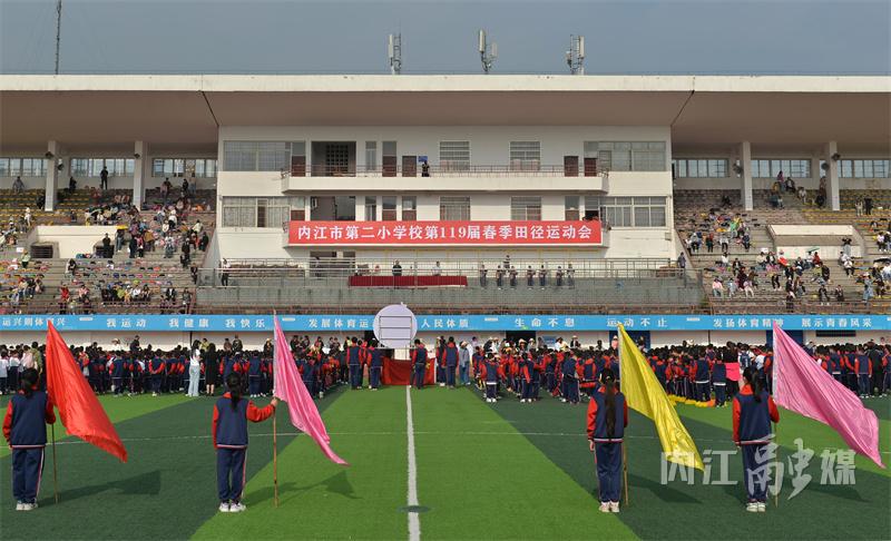 4月11日,内江市第二小学校2024年春季田径运动会在梅家山体育场开幕,全校千余名学生参加运动会。