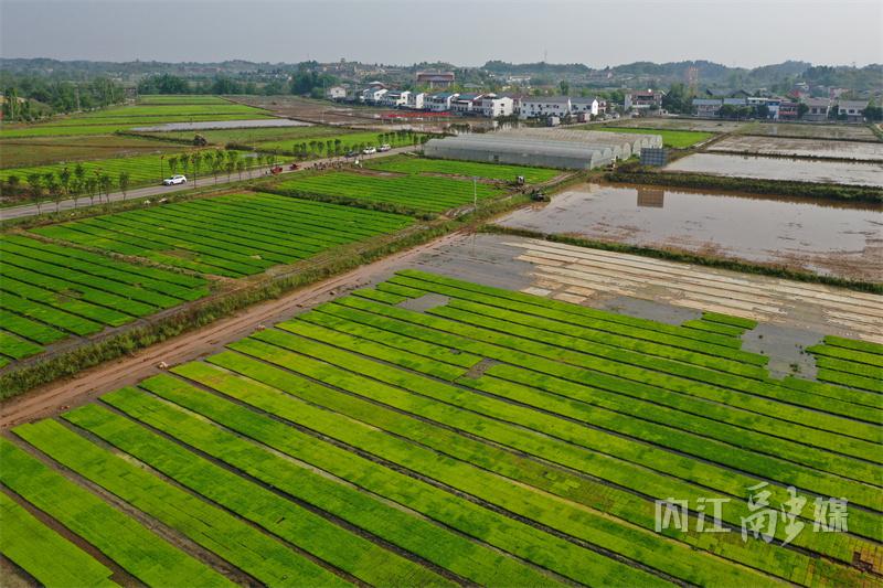 4月15日,在位于内江市东兴区田家镇赵家坝社区的长江现代农业园内,绿油油的秧田长势良好,青葱翠绿的秧苗为一片片水田披上了“绿衣”,煞是养眼。