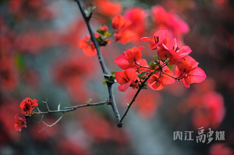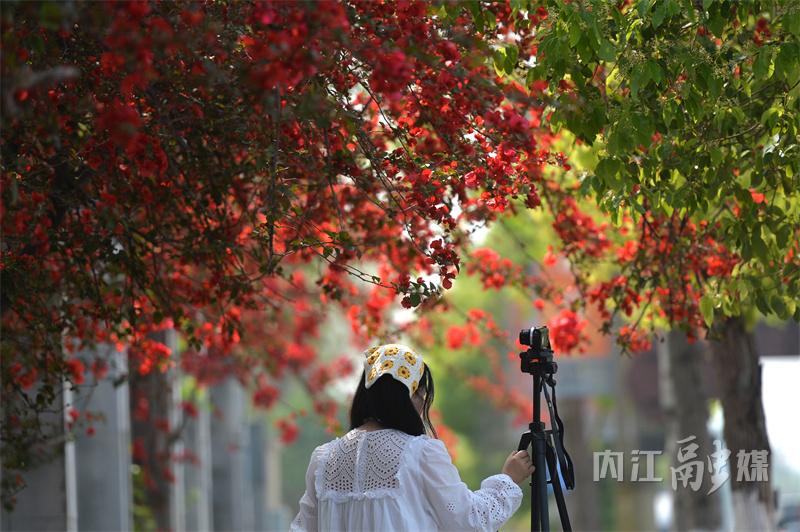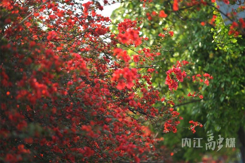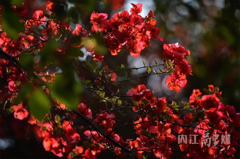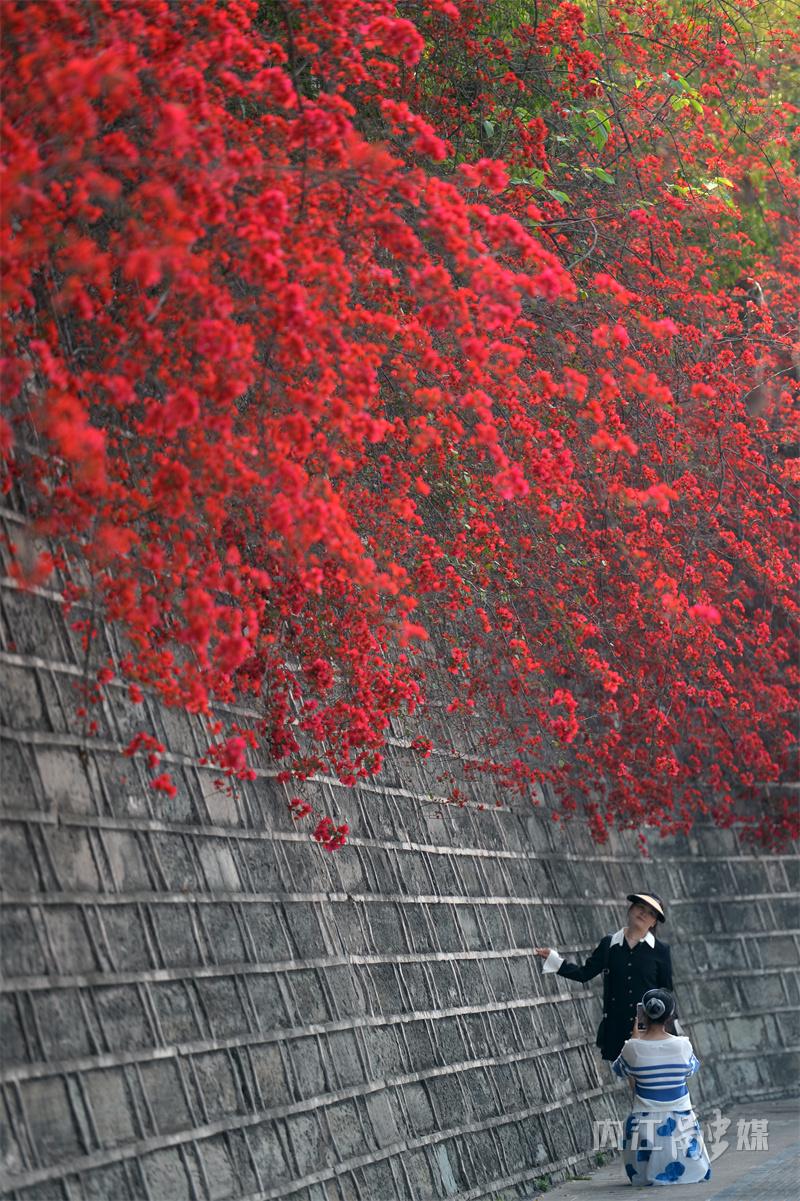 非叶非花三角开,倚墙吐艳近窗台。近日,位于内江天立国际学校外的三角梅花瀑如约而至,吸引了不少市民前来赏花拍照。