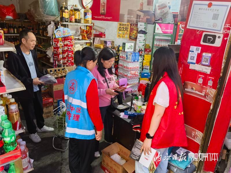 4月16日,市中区公园街社区干部、网格员,在辖区开展艾滋病防治知识宣传活动。