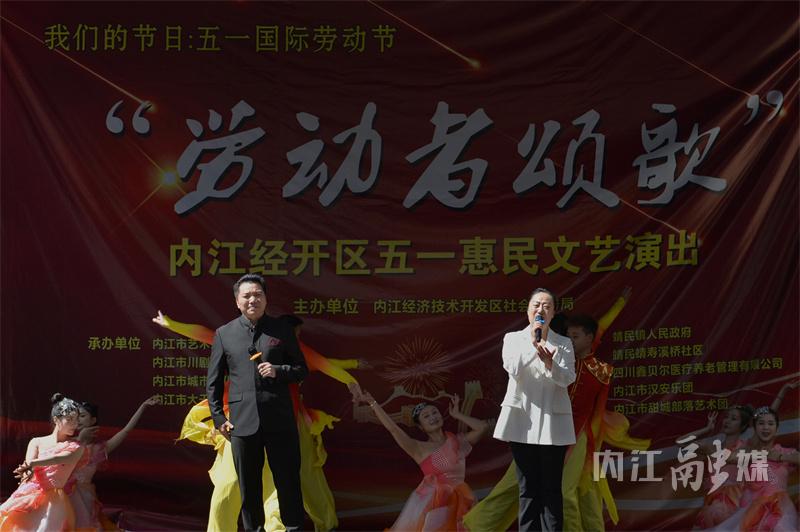 4月19日,“劳动者颂歌——内江经开区五一惠民文艺演出”在内江经开区靖民镇寿溪佳苑社区举行,来自内江市艺术交流发展中心、内江市川剧团、内江市大千演艺有限责任公司、内江市汉安乐团、甜城部落合唱团的演员们为社区居民献上了一个个精彩节目。‘’