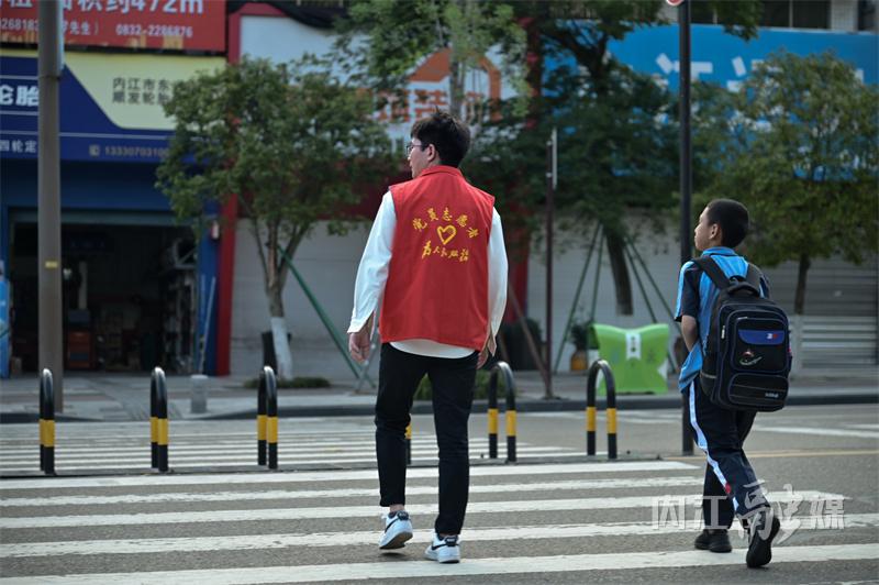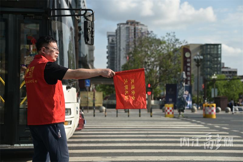 当日下午5时,来自市纪委监委、市法院、市文广旅局等单位的志愿者按时到岗,在东兴区汉安大道与西林大道交会处、汉安大道与西林大道交叉路口、市中区大洲路等各自值守路段开展沿街巡逻、路口值守等文明劝导志愿服务,红色身影为甜城内江增添了一抹亮丽色彩。