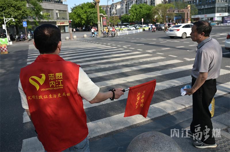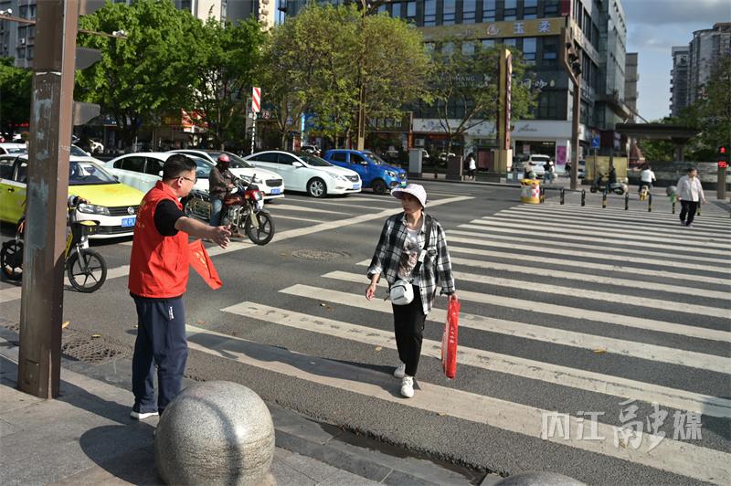内江市中级人民法院志愿者张春燕表示,在参与文明实践日活动过程中,她劝导市民遵守交通规则,规范停放车辆,主动帮助老弱病残等行动不便的市民过马路。她用自己的一言一行,引导市民们自觉践行文明、守护文明,让值守路段变得更加文明、安全、有序。