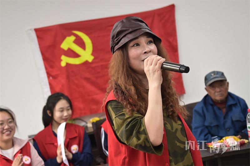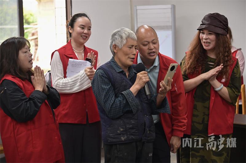 活动尾声,志愿者还邀请老人一同登台演唱《涛声依旧》《我和我的祖国》等歌曲,与老人们的互动演唱将活动推向高潮,老人们一边看节目,一边吃着零食唠家常,高兴得合不拢嘴。