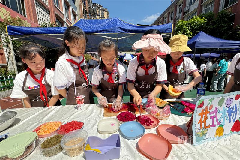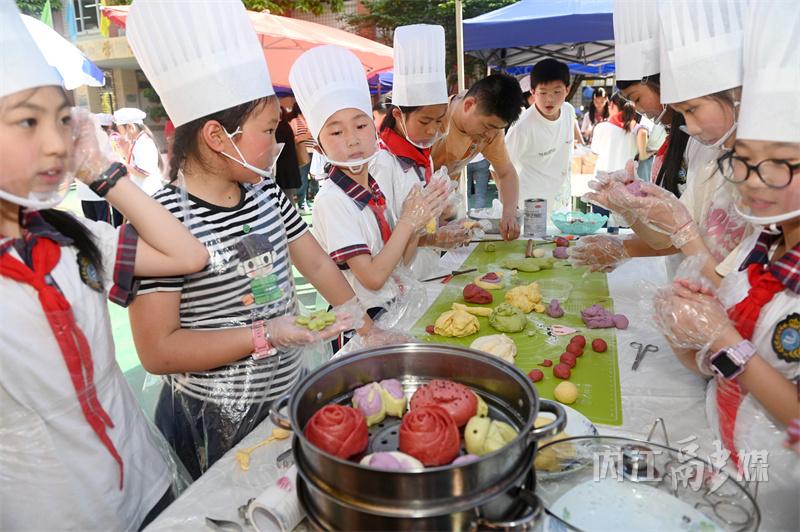 4月26日,内江市第二小学校举办劳动实践周——班级厨艺大赛,学生们在制作烹饪各类美食过程中亲身体验劳动的辛苦和乐趣,提升劳动实践能力,增强团队合作精神。