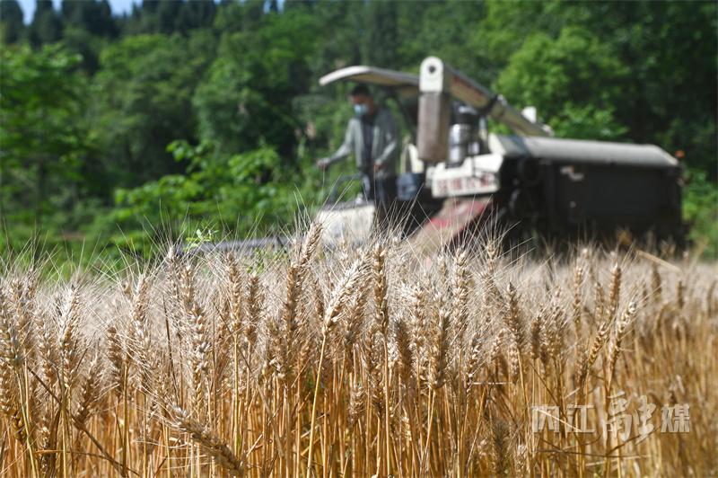 眼下,石子镇种植的4000余亩小麦迎来丰收,当地农民抢抓时节进行收割、烘干、入库,确保颗粒归仓。