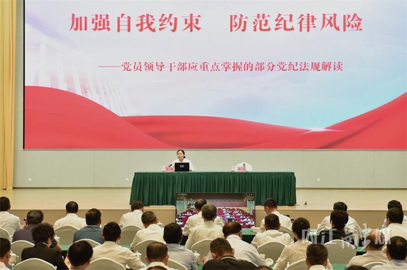 4月27日-29日,内江市市级领导干部党纪学习教育读书班在市委党校举行。学习强调,要深入学习贯彻习近平总书记关于党纪学习教育的重要讲话和重要指示精神,坚持从学纪入手抓好党纪学习教育,把学习贯彻《中国共产党纪律处分条例》作为一项长期政治任务,持续在学纪、知纪、明纪、守纪上下功夫,着力推动党纪学习教育走深走实、见行见效,为推进新时代内江振兴崛起提供坚强纪律保障。