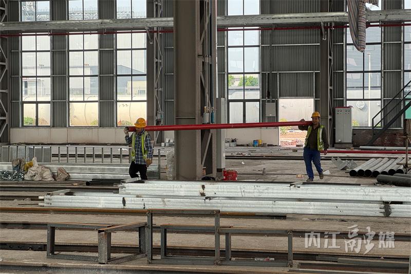 “项目3号楼、4号楼的装饰装修,容器和弯管车间钢结构的主体与围护,室外总平、配套道路等基础设施等于3月底完成施工。4月份以来,项目进入收尾消缺阶段。”内江石油容器厂搬迁项目经理郑红波介绍,项目自开工建设以来,项目部精心组织、严密部署,优化施工方案,组织人员紧密施工。当前项目组每天安排50余名工人加班加点进行山墙、消防管道、电气桥架等施工作业收尾,力求在确保安全施工的前提下,保质保量完成任务。