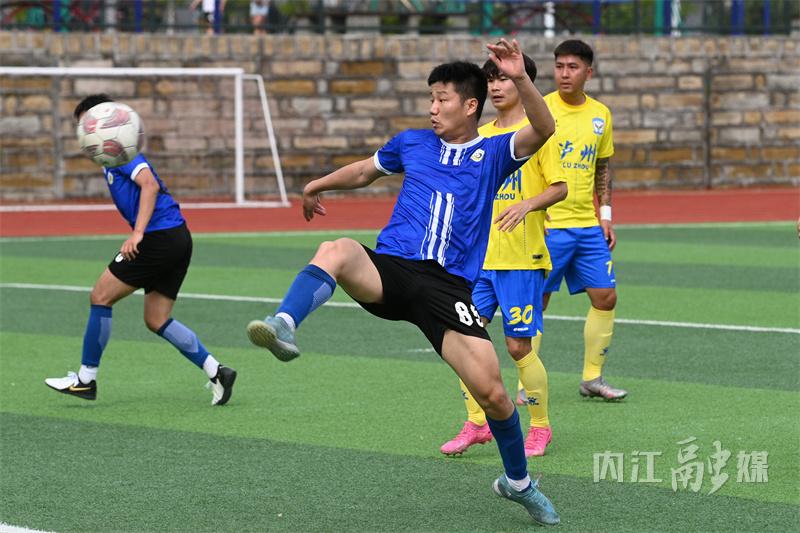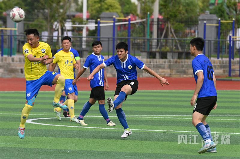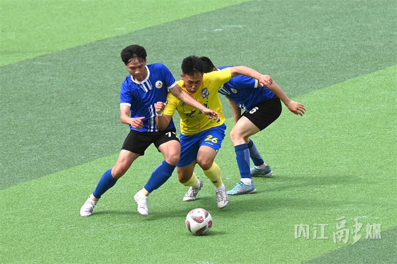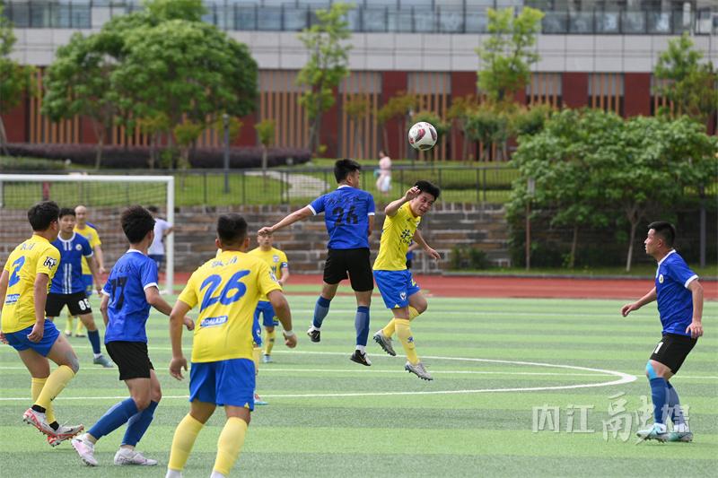 5月12日,在内江市高级技工学校足球场,内江代表队和泸州代表队在首轮比赛中展开激烈角逐。