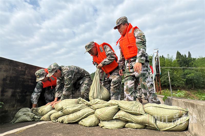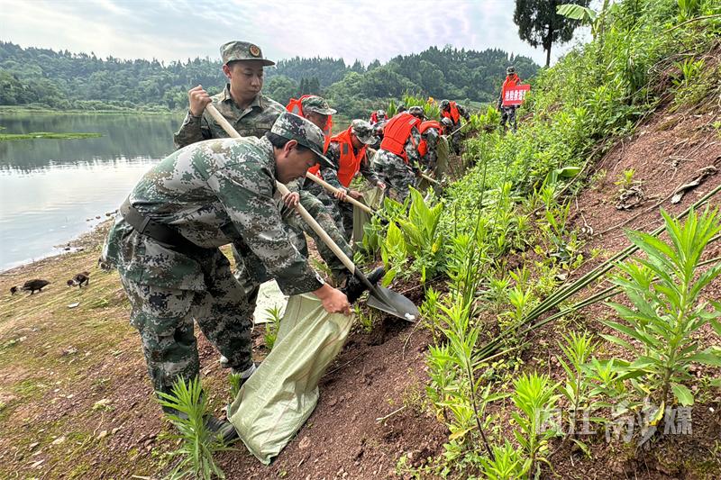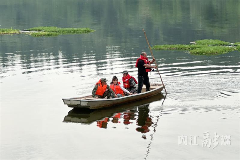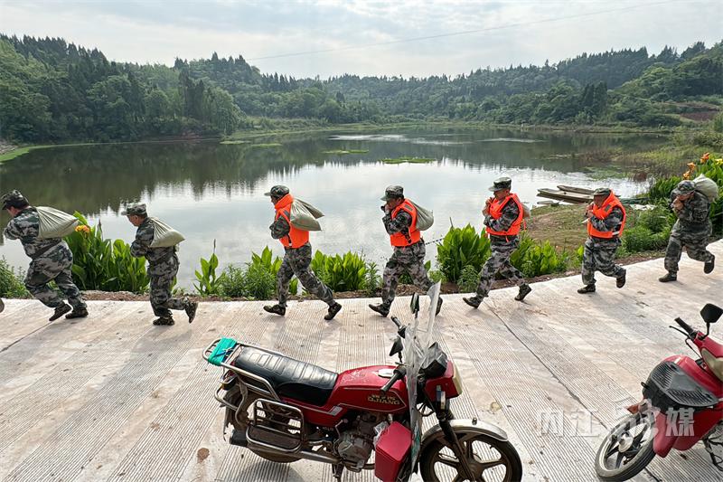 5月14日,内江市东兴区高梁镇慈花村方家沟水库,民兵队员在演练中转移“受困”群众。