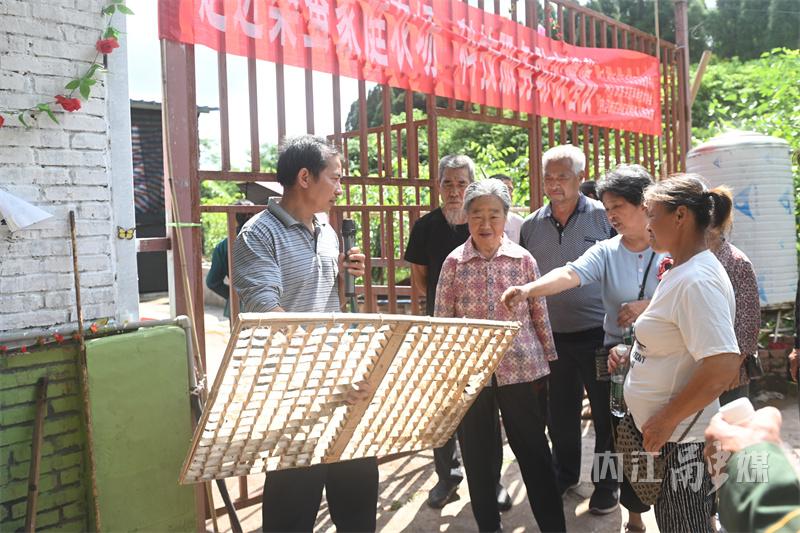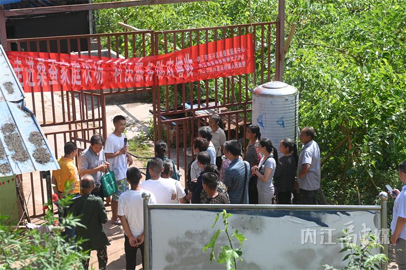 这是内江市东兴区蚕桑茧服务中心组织村民到双桥镇双流村开展蚕桑现场观摩培训的场景,来自郭北、永兴、富溪等地的蚕农代表、镇村蚕桑员40余人参加。