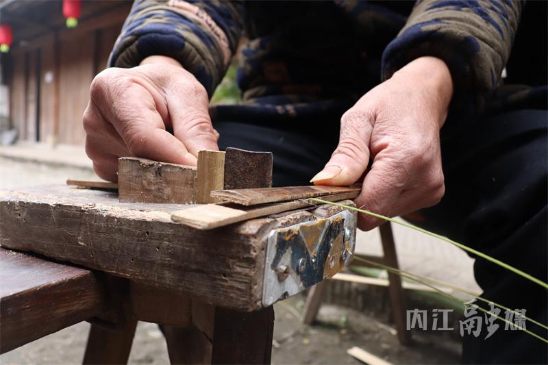 记者现场看到,师徒二人配合默契,从刮篾、冲篾(又叫破丝)、揉篾、槽光(抽丝和槽丝)、晾丝、选丝、倒丝装筒到编织,一气呵成,一共13道工序,他们重复了无数遍。