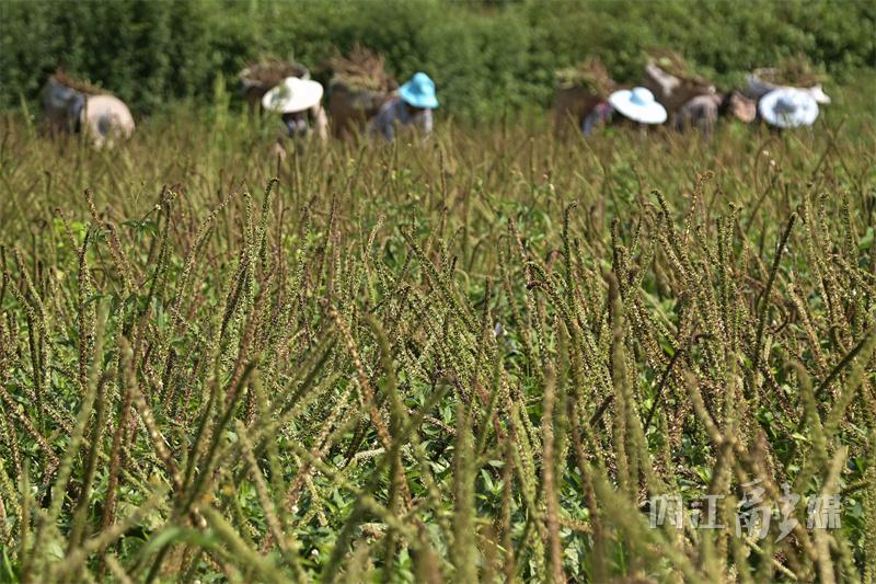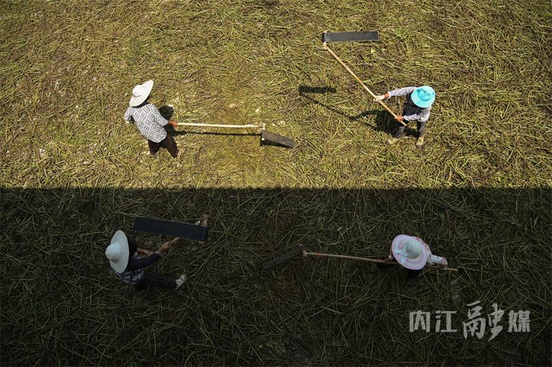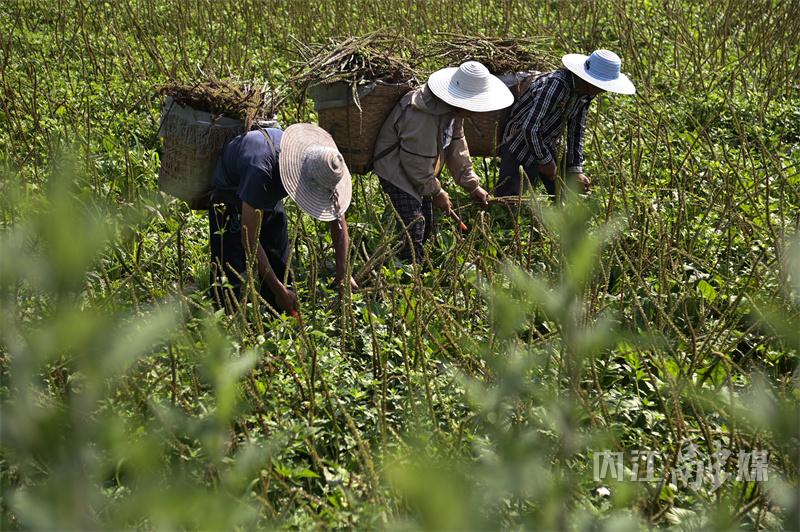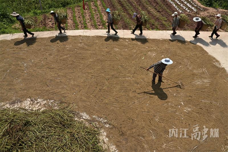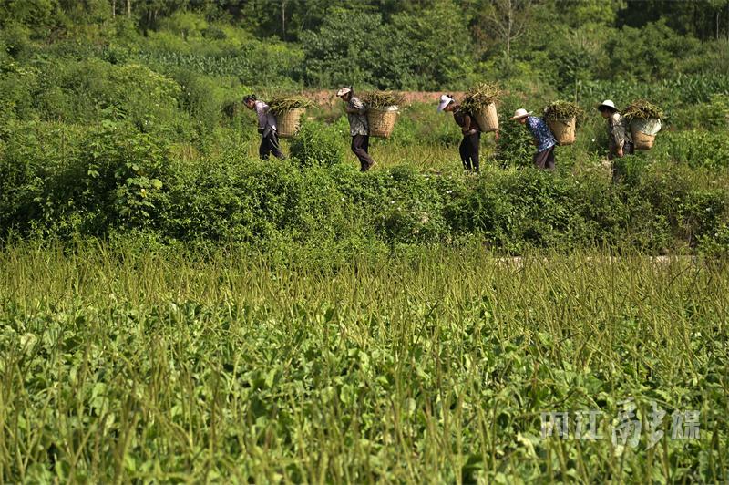 5月23日,内江市东兴区高梁镇方家沟村组织村民采收车前子。