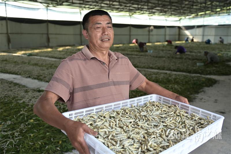 “与养殖普通的丝茧蚕相比,僵蚕养殖更省桑叶和劳力,相对产值更高。”试点养殖基地负责人文加富介绍,他今年开始试养僵蚕,总共喂养了22张,僵蚕养殖周期短,一年可以养13季,单产在18-22公斤左右,单张产值3200元以上。