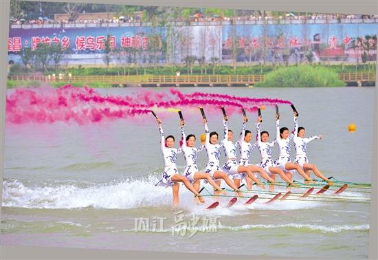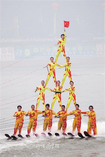 2011年第二届龙舟节,中国、美国、澳大利亚艺术滑水队精英相聚内江,上演力与美的“传奇”,叠罗汉、水上芭蕾、特技跳跃等水上特技表演让市民大开眼界。