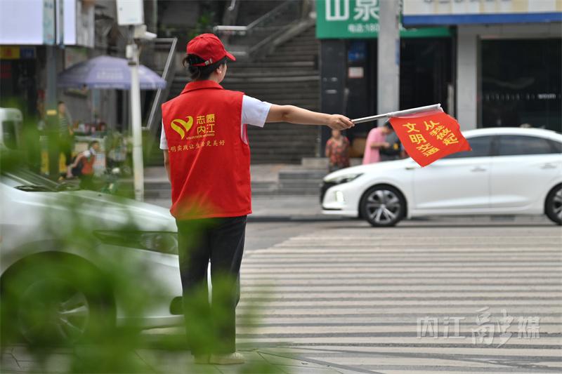 5月27日,“让文明出行成为甜城靓丽风景”文明实践日活动继续开展,来自市级各机关企事业单位的志愿者走上街头,持续开展文明劝导服务。